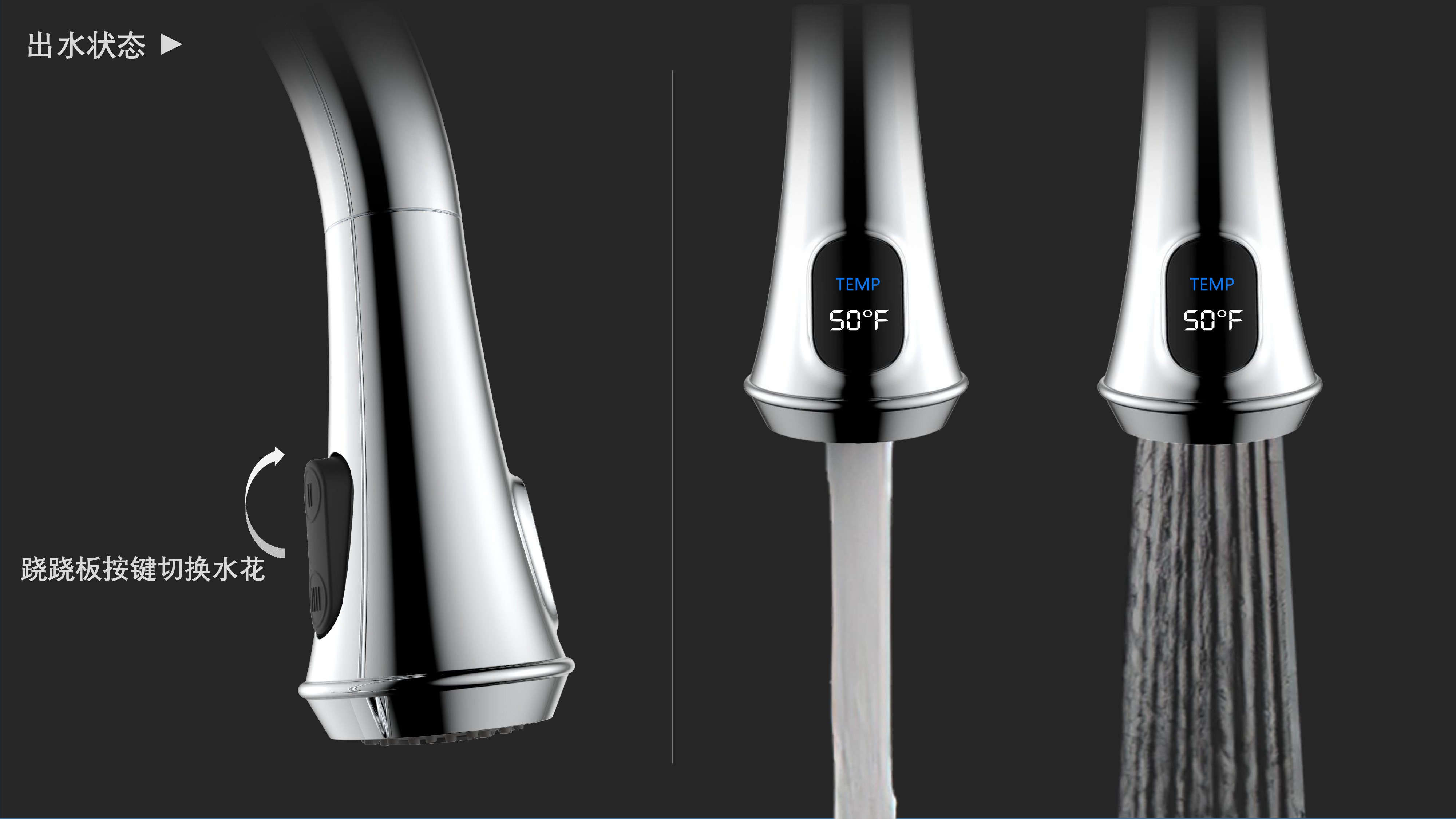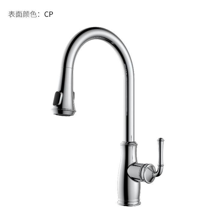 古典廚房龍頭;抽拉頭隨意抽拉多角度使用;采用全密封防水端頭;水力發(fā)電技術,智能芯片溫度數(shù)顯-冷水TEMP顯示藍色、溫水TEMP顯示綠色、熱水TEMP顯示紅色