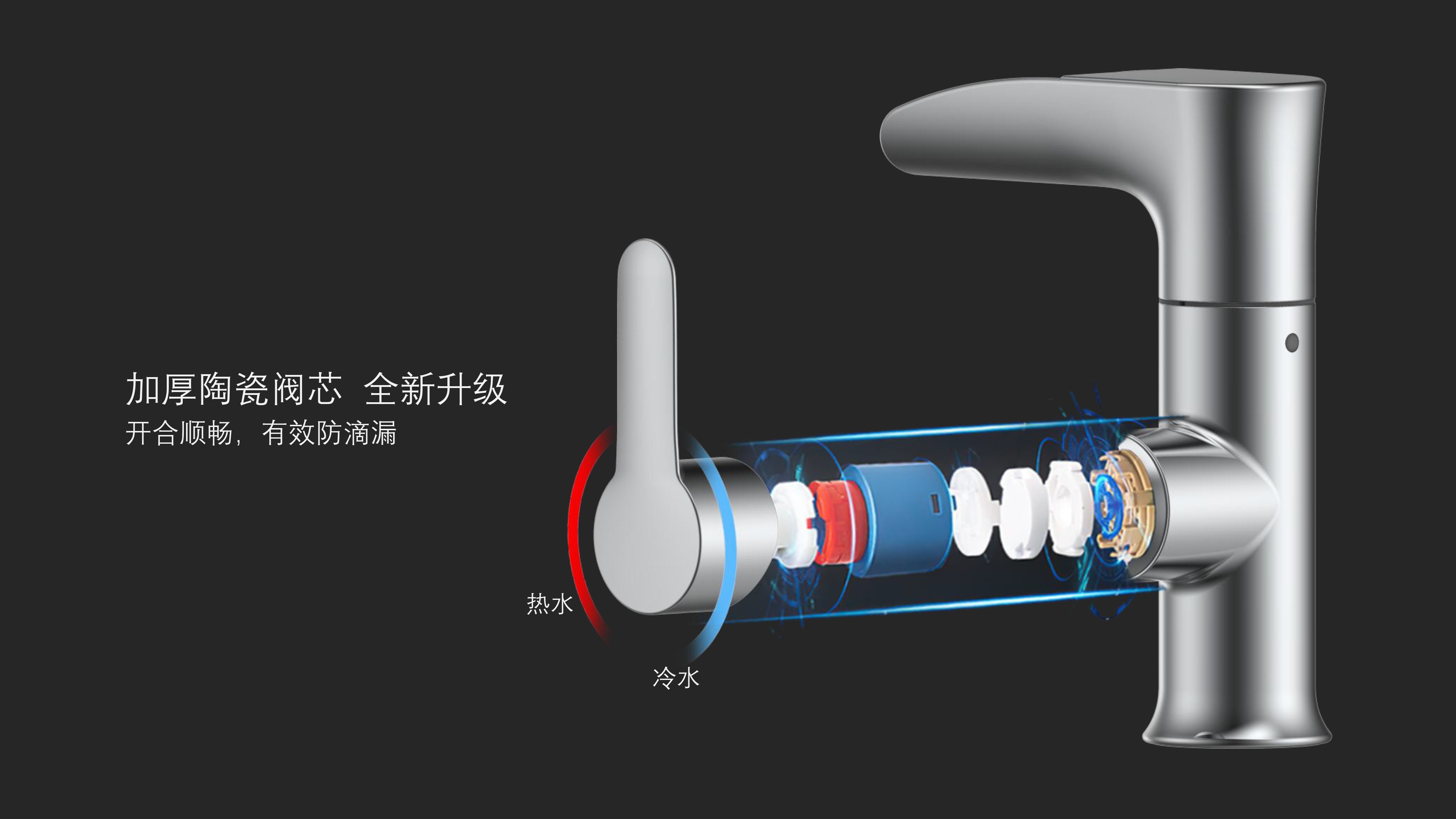 CUPC/ WaterSense/ NSF61/ AB1953(NSF372)認證;簡約時尚設(shè)計;加厚陶瓷閥芯,開合順暢,有效防滴漏;LED三種顏色-涼水呈藍色、溫水呈綠色、熱水呈紅色
